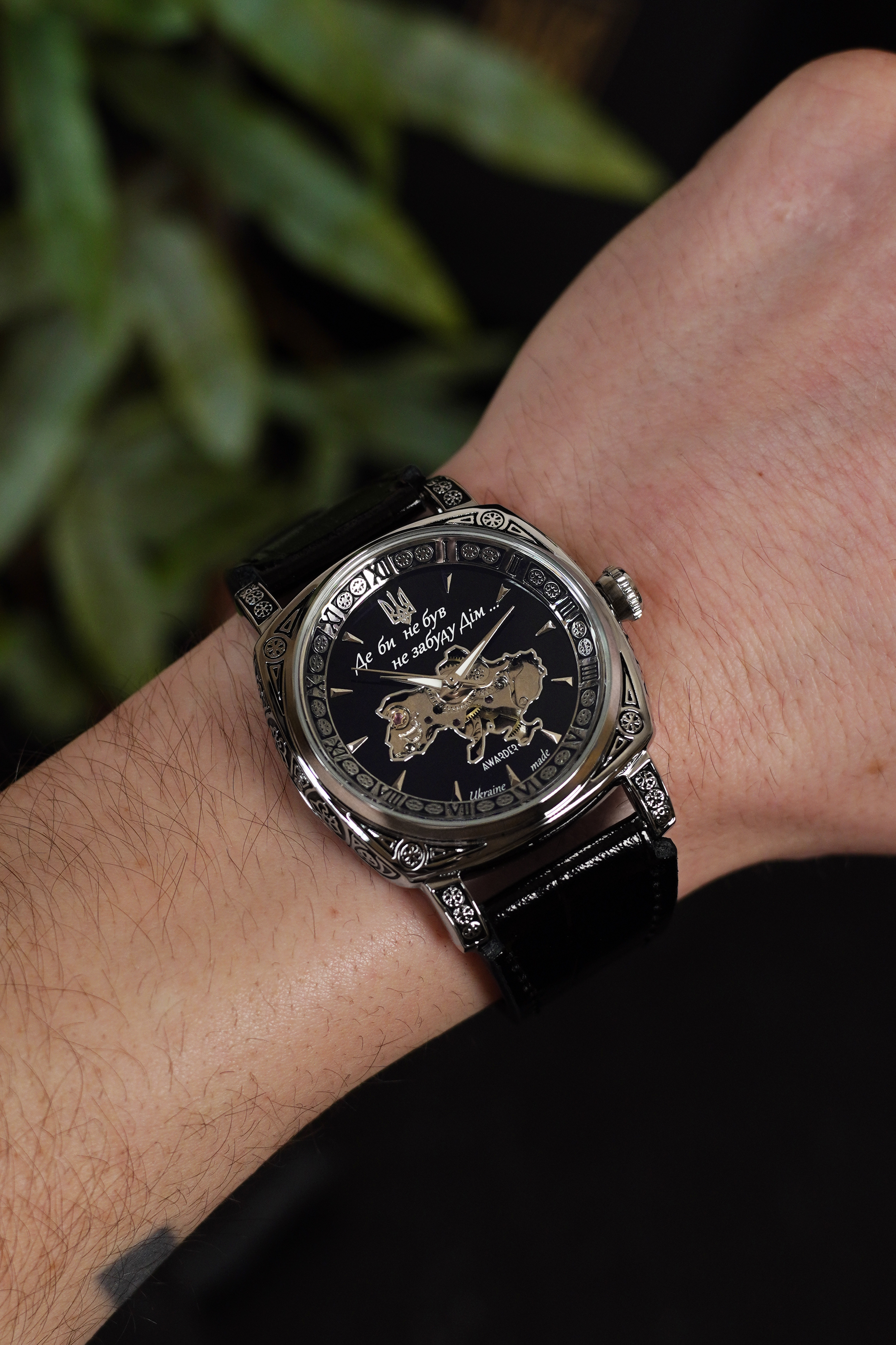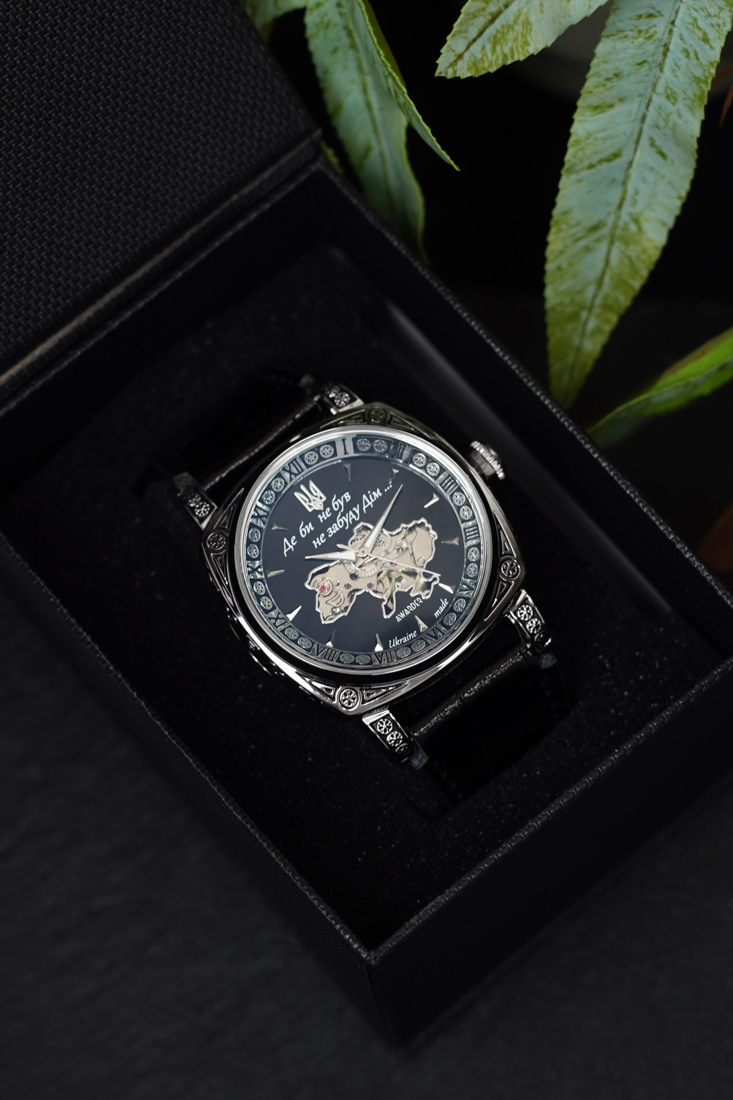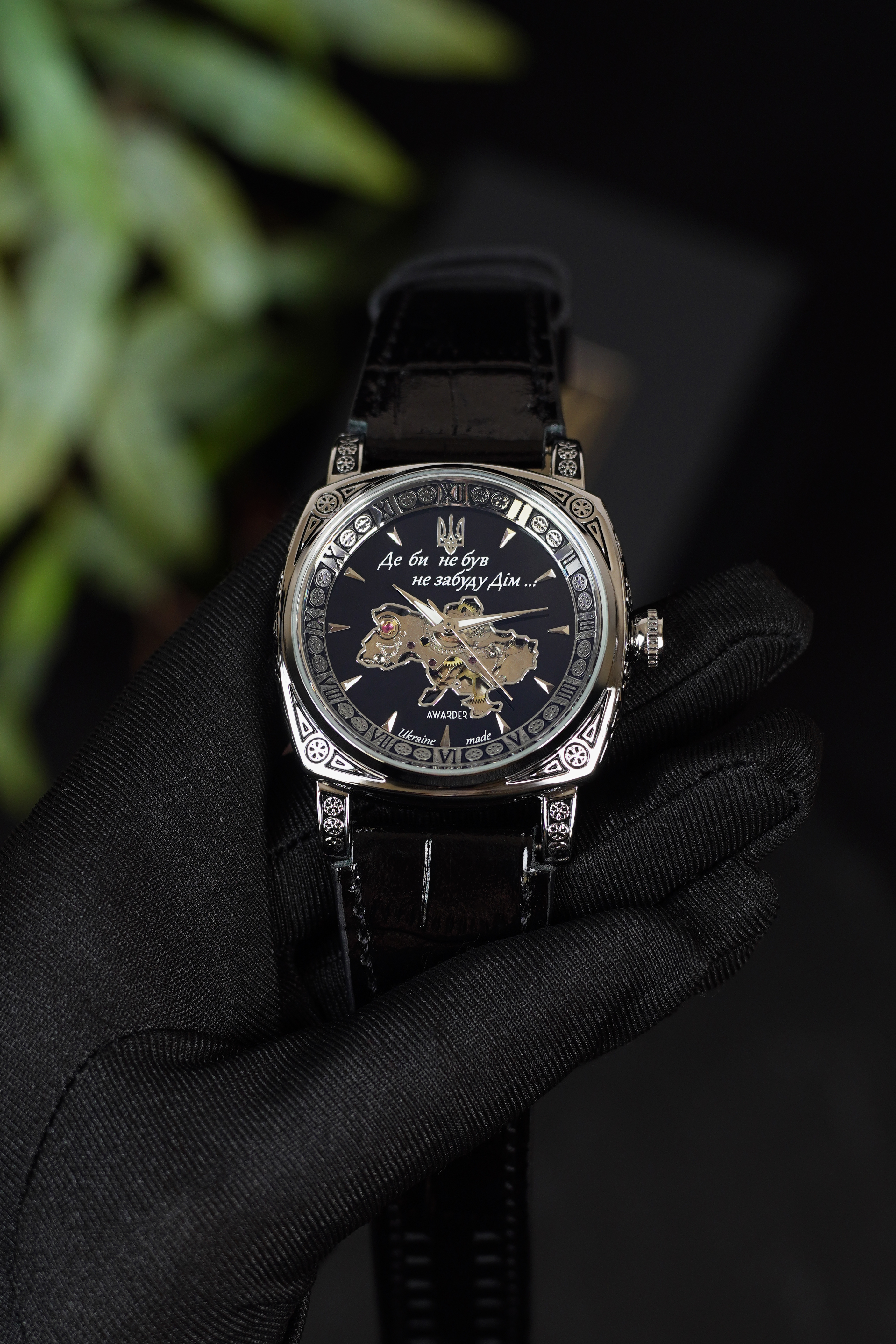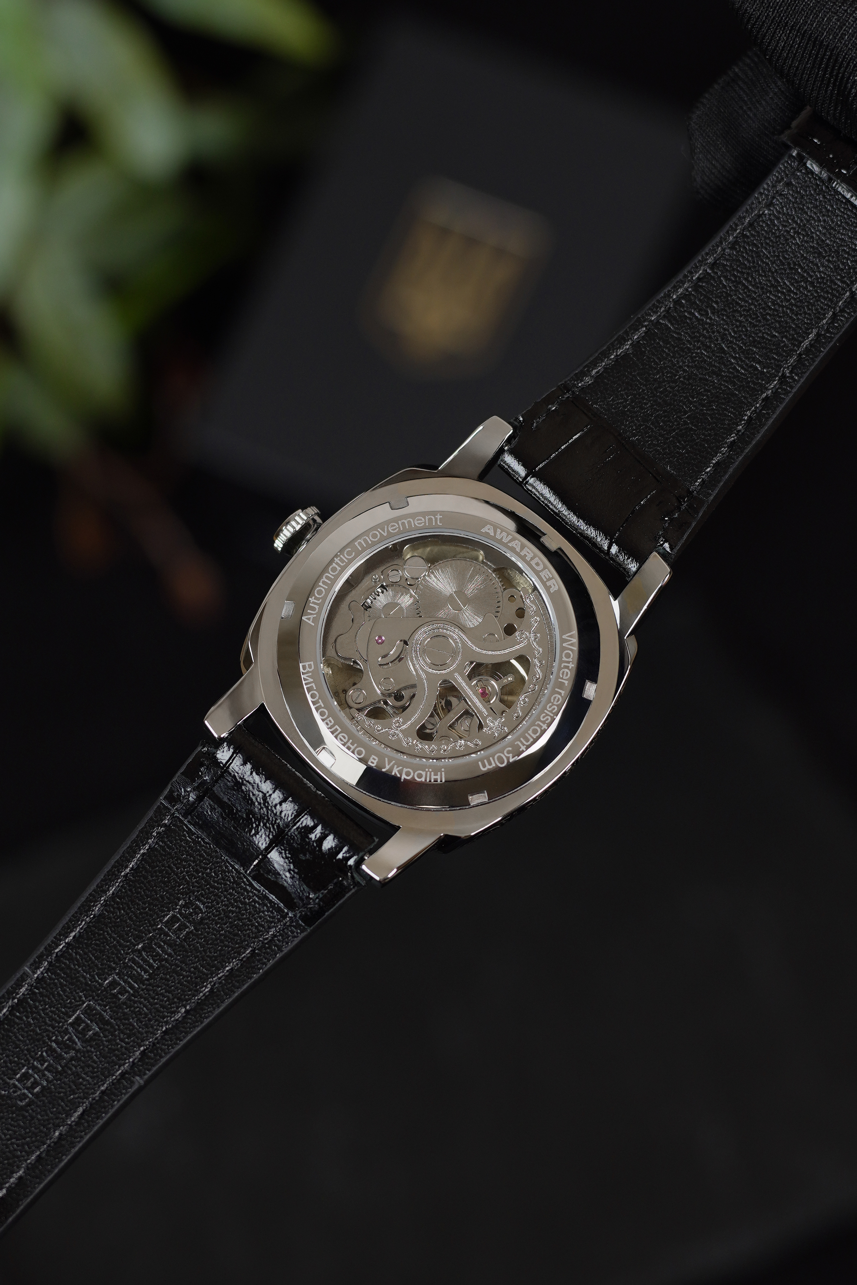 Awarder 021SIBK Скелетон «Где бы ни был» — это мужские механические часы с автоподзаводом, произведённые в Украине. Открытый скелетон-дизайн позволяет наблюдать за работой механизма, подчёркивая индивидуальность и стиль владельца.