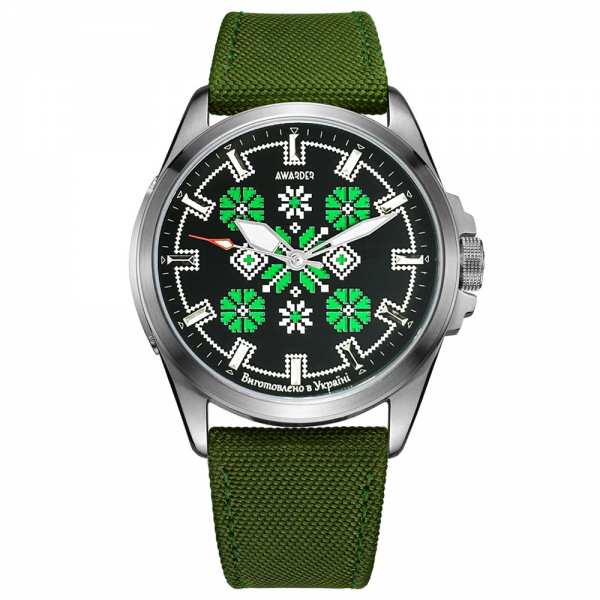 Awarder Embroidery Silver-Green Green Battery 10ATM - описание, характеристики и цена.