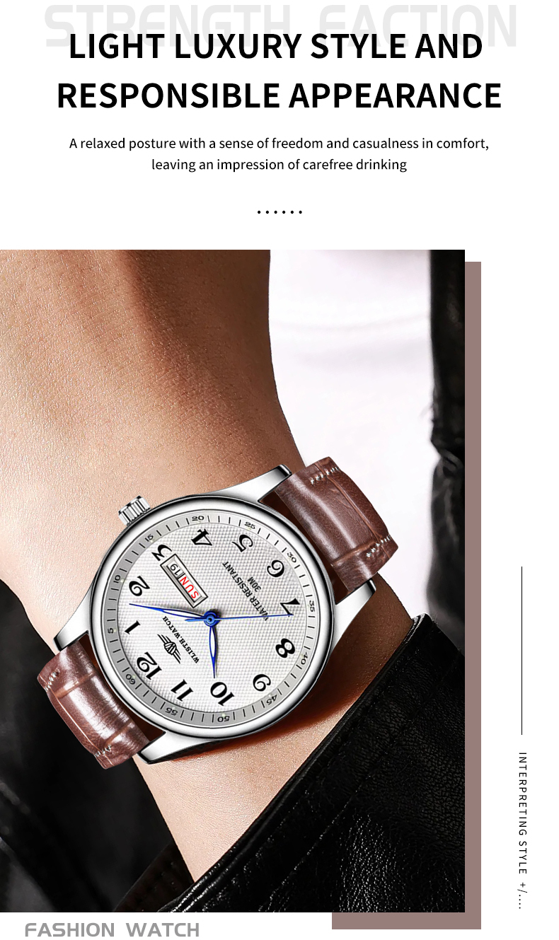 Классические мужские часы Hemsut WLISTH Watch – идеальное сочетание элегантного дизайна и практичности. Модель выполнена в сдержанном классическом стиле, прекрасно подходящем как для делового образа, так и для повседневного использования.Циферблат с четкими арабскими цифрами обеспечивает легкое считывание времени, а контрастные синие стрелки придают часам особый шарм. Удобное окошко дня недели позволяет всегда быть в курсе актуальной даты. Коричневый кожаный ремешок комфортно сидит на запястье и подчеркивает классический стиль аксессуара.Прочный металлический корпус и водозащита до 30 метров обеспечивают надежность в повседневном использовании.В комплекте идет официальная гарантия на 12 месяцев.Купить Hemsut Standart от производителя Hemsut недорого по цене 989 грн. Доставка Hemsut Standart 2311 в Киев, Днепр, Одессу, Львов, Харьков, Винницу и другие регионы Украины по тарифам Новой Почты.