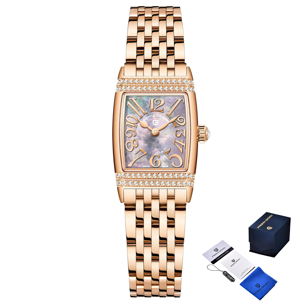 Часы Pagani Design PD-1737 Gold-Pearl - это стильный женский аксессуар, гармонично сочетающий элегантность и функциональность. Корпус и ремешок изготовлены из нержавеющей стали золотистого цвета, что придает часам роскошный вид. Он имеет прямоугольную форму, сапфировое стекло и арабские цифры на циферблате, подчеркивающие его классический стиль. Часы водонепроницаемые на глубину до 50 м и оснащены кварцевым механизмом. Длина ремешка составляет 19 см, ширина – 16 см, а вес часов – 80 г. Каждое изделие имеет гарантию 12 месяцев и изготовлено в Китае. Пусть Pagani Design PD-1737 станет вашим надежным спутником в повседневной жизни!Купить Pagani Design PD-1737 Gold-Pearl от производителя Pagani Design недорого по цене 3 610 грн. Доставка Pagani Design PD-1737 Gold-Pearl 1138-0177 в Киев, Днепр, Одессу, Львов, Харьков, Винницу и другие регионы Украины по тарифам Новой Почты.