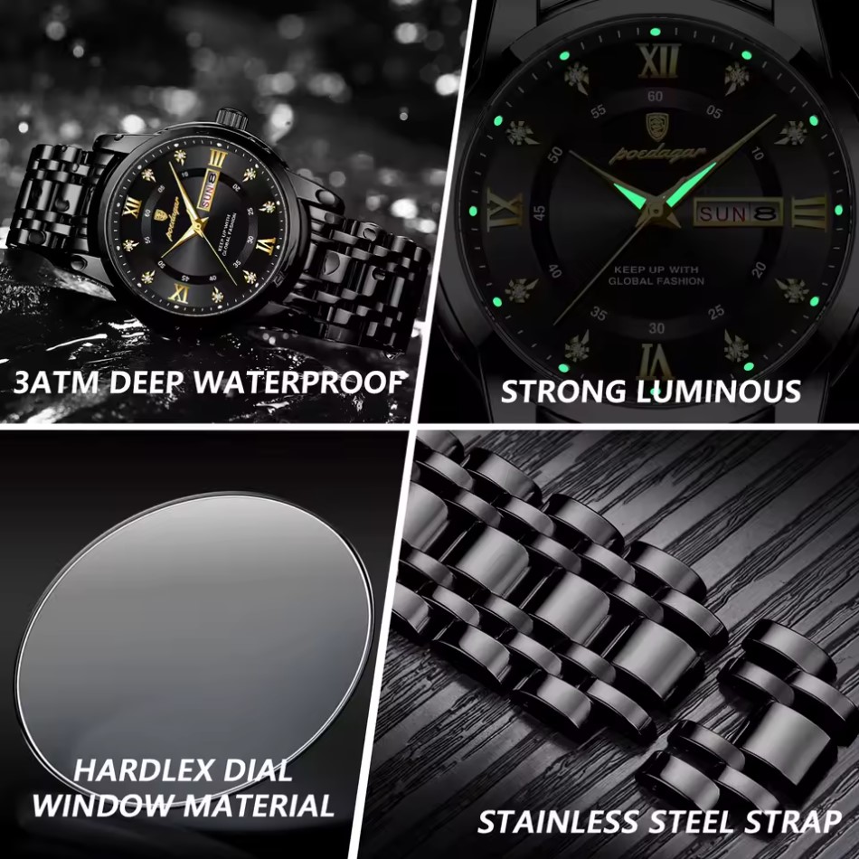 Poedagar Unique – лимитированная версия популярной модели Poedagar с уникальным оттенком циферблата.Poedagar – это сочетание элегантности, точности и современного стиля. Часы этого бренда предназначены для тех, кто ценит утонченность в деталях и стремится подчеркнуть свою индивидуальность.Каждая модель Poedagar – это:Качественные материалы: нержавеющая сталь, крепкое минеральное стекло, надежные кварцевые механизмы.Стильный дизайн: от классических решений до современных спортивных форм.Функциональность: водозащита, индикатор даты, светоотражающие стрелки и другие полезные функции.Poedagar – это идеальный выбор для деловых встреч, повседневного стиля или особых событий. Это не просто часы – это выражение вашего вкуса, уверенности и стиля.В комплекте идет официальная гарантия на 12 месяцев.Купить Poedagar Unique Men Black от производителя Poedagar недорого по цене 989 грн. Доставка Poedagar Unique Men Black 2344 в Киев, Днепр, Одессу, Львов, Харьков, Винницу и другие регионы Украины по тарифам Новой Почты.