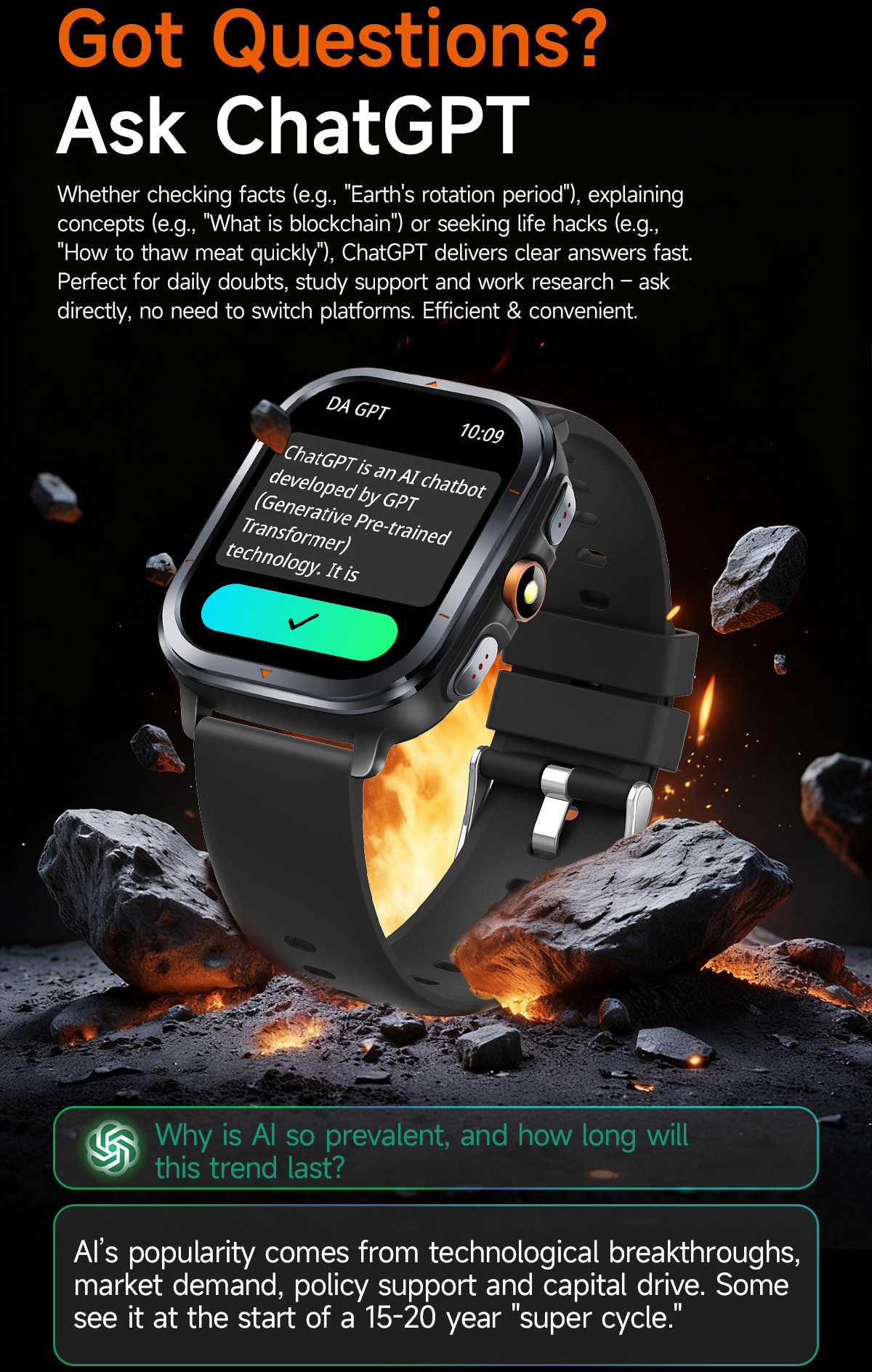 Smart Bavaro Nano - это новинка 2026 года от UWatch со встроенным ChatGPT, AI-помощником и компасом. Основными преимуществами новинки являются:• GPS с мульти спутниковой навигацией и высокой точностью.• Большой 2.01" Ultra-Clear Retina дисплей.• AI-циферблаты и встроенный GPT.• Bluetooth-вызовы прямо с часов.• Компас, высотомер и барометр.• Встроенный мощный фонарик (4 режима + SOS).• Продолжительная автономность: батарея 450 мА-ч.В комплекте идет сменный ремешок и официальная гарантия на 12 месяцев.Купить Smart Bavaro Nano Rubber, 2 ремешка от производителя Uwatch недорого по цене 1 975 грн. Доставка Smart Bavaro Nano Rubber, 2 ремешка 2214 в Киев, Днепр, Одессу, Львов, Харьков, Винницу и другие регионы Украины по тарифам Новой Почты.