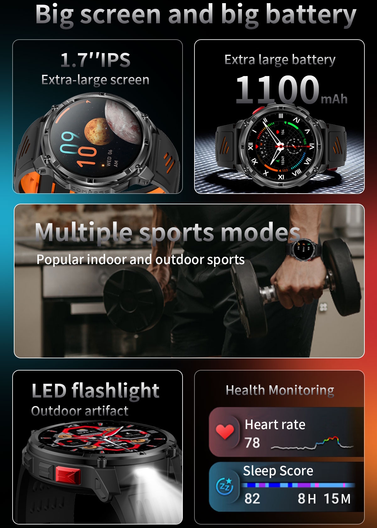Smart Helicopter от легендарного бренда UWatch – это мощные смарт-часы для активной жизни и экстремальных условий.• Большой 1.7” IPS-дисплей – четкое, яркое и контрастное изображение даже на солнце.• Сверхмощная батарея 1100 mAh – длительная работа без подзарядки.• Большое количество спортивных режимов – идеально подходит для тренировок в зале, беге, велоспорте, туризме и outdoor-активностях.• Встроенный LED-фонарик – незаменимый помощник в темноте, походах и в экстренных ситуациях.• Круглосуточный мониторинг здоровья – контроль пульса, давления, качества сна и физического состояния 24/7.• Надежный корпус для сложных погодных и экстремальных условий.Smart Helicopter от UWatch – это сочетание выносливости, функциональности и брутального дизайна, созданное для настоящих действий, а не компромиссов.В комплекте идет официальная гарантия на 12 месяцев.Купить Smart Helicopter от производителя Uwatch недорого по цене 1 975 грн. Доставка Smart Helicopter 2212 в Киев, Днепр, Одессу, Львов, Харьков, Винницу и другие регионы Украины по тарифам Новой Почты.