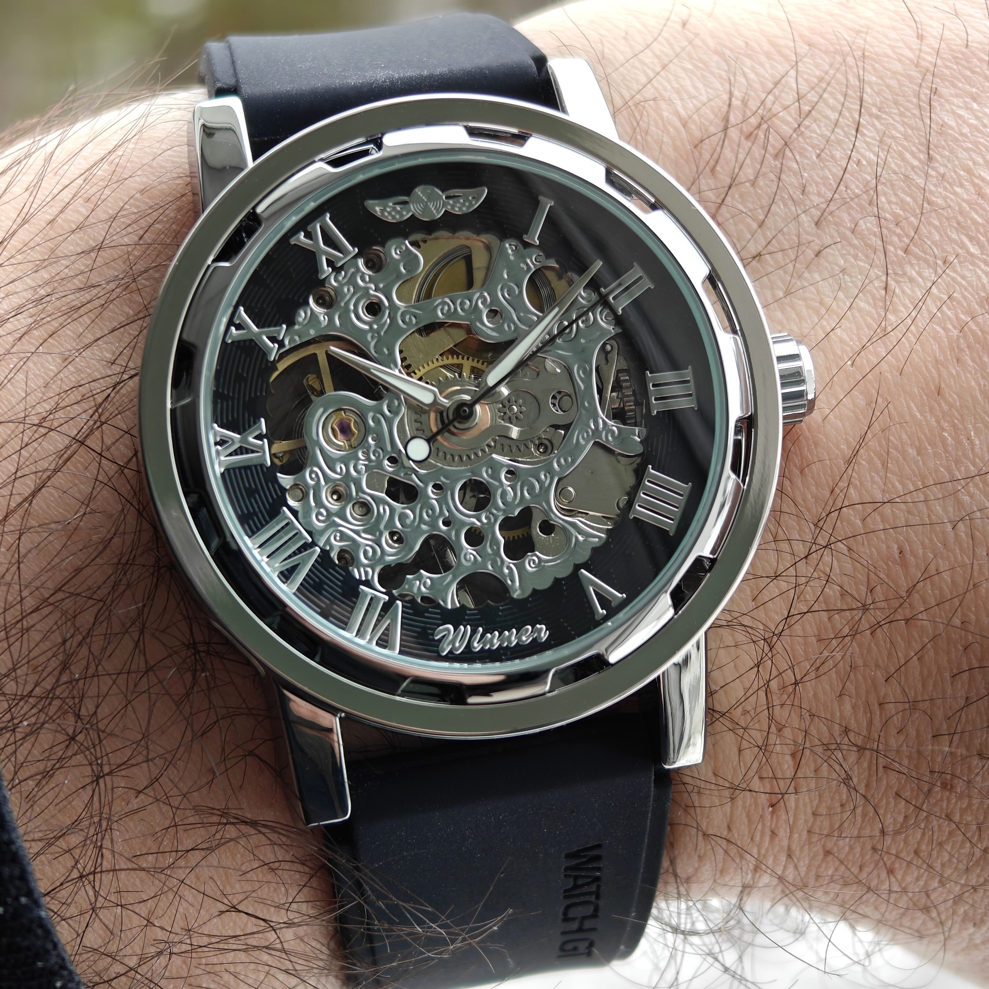 Механические часы Winner – это сочетание классики и современного стиля по доступной цене. Прозрачная задняя крышка и скелетон-дизайн позволяют видеть работу механизма, придающего часам особого шарма.Эти модели предназначены для мужчин, которые ценят индивидуальность, практичность и надежность. Качественный механизм работает без батареек, используя энергию завода, а прочный корпус и ремешок обеспечивают комфорт в повседневной носке.Преимущества часов Winner: • стильный скелетон-дизайн; • механический завод без батарейки; • качественный корпус и ремешок; • официальная гарантия 12 месяцев; • мы являемся официальными дистрибьюторами Winner в Украине.Часы Winner подчеркнут ваш характер и станут надежным аксессуаром на каждый день.Примечание: Ремешок, который изображен на главном фото, является дополнительным и вкладывается в посылку отдельно.Купить Winner Black R-Series, 2 ремешка от производителя Winner недорого по цене 1 195 грн. Доставка Winner Black R-Series, 2 ремешка 2275 в Киев, Днепр, Одессу, Львов, Харьков, Винницу и другие регионы Украины по тарифам Новой Почты.