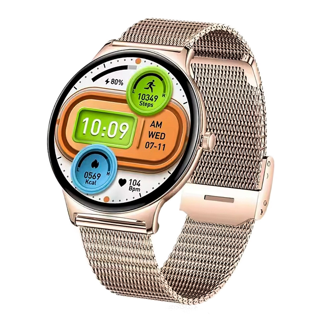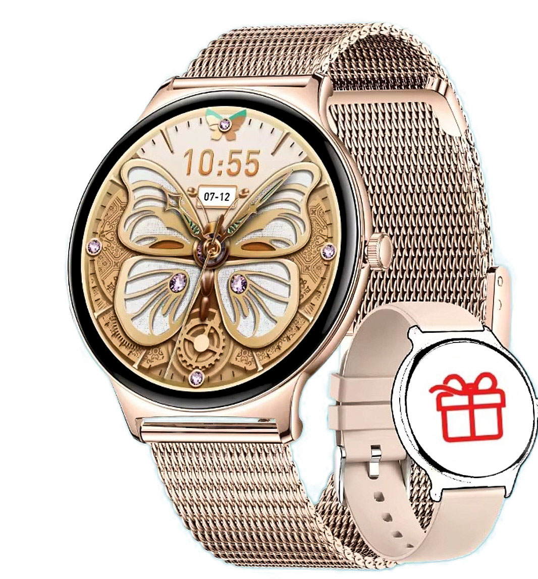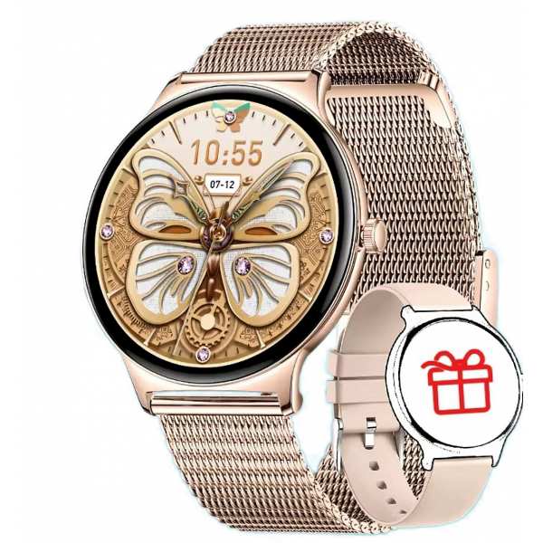 Smart T8 Velora Pro+ Gold — это женские смарт-часы с золотистым стальным браслетом и тонким корпусом золотого цвета, которые сочетают элегантный внешний вид и современный функционал.