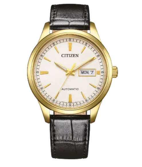 Citizen NY4059-09AC — это стильные мужские часы с механическим автоподзаводом, сочетающие классический внешний вид и практичность. Белый циферблат в сочетании с золотистым стальным корпусом и чёрным кожаным ремешком формирует элегантный образ, который отлично подходит как к деловому костюму, так и к повседневной одежде. Прозрачная задняя крышка позволяет наблюдать за работой механизма, подчёркивая характер часов.