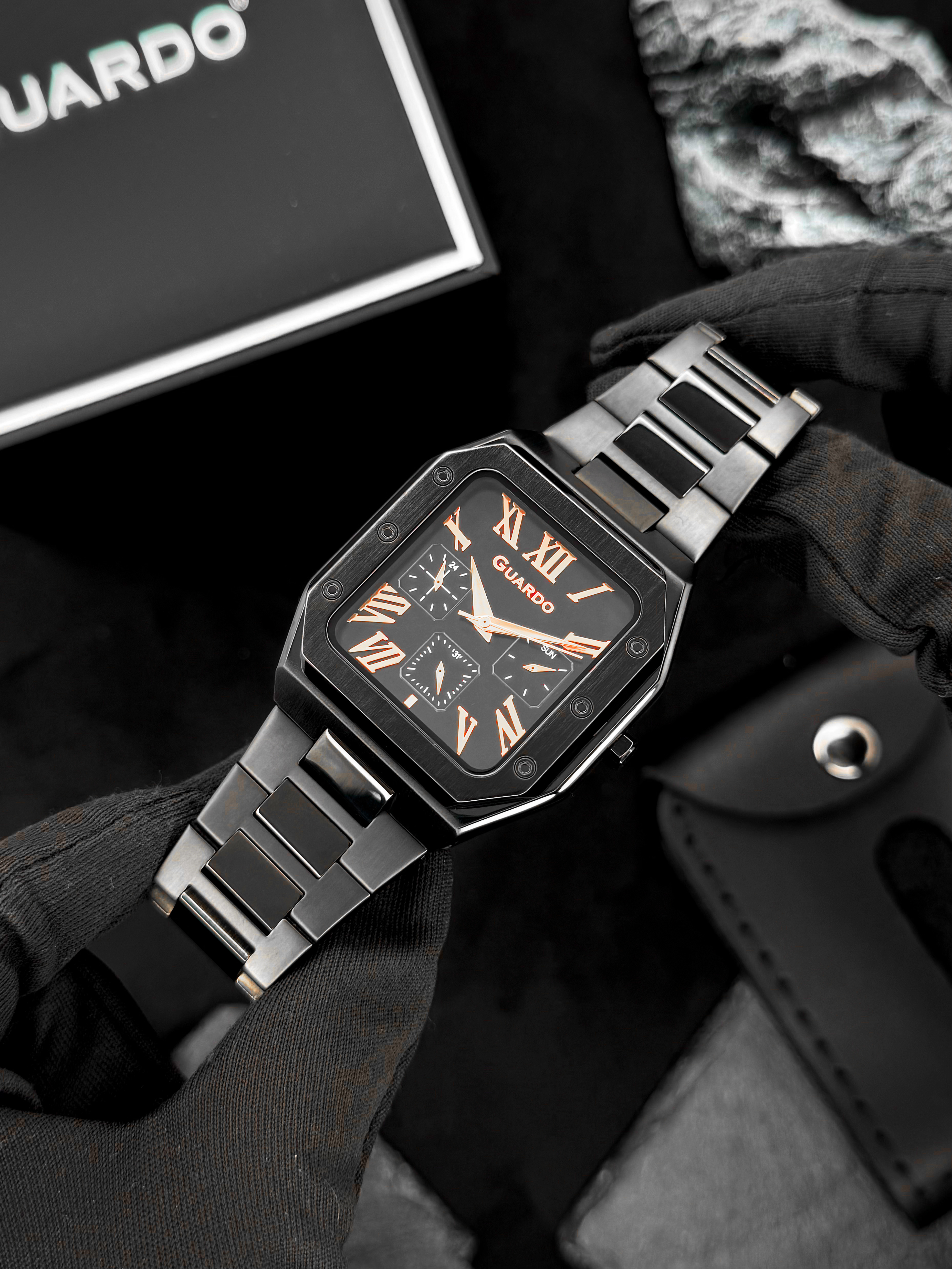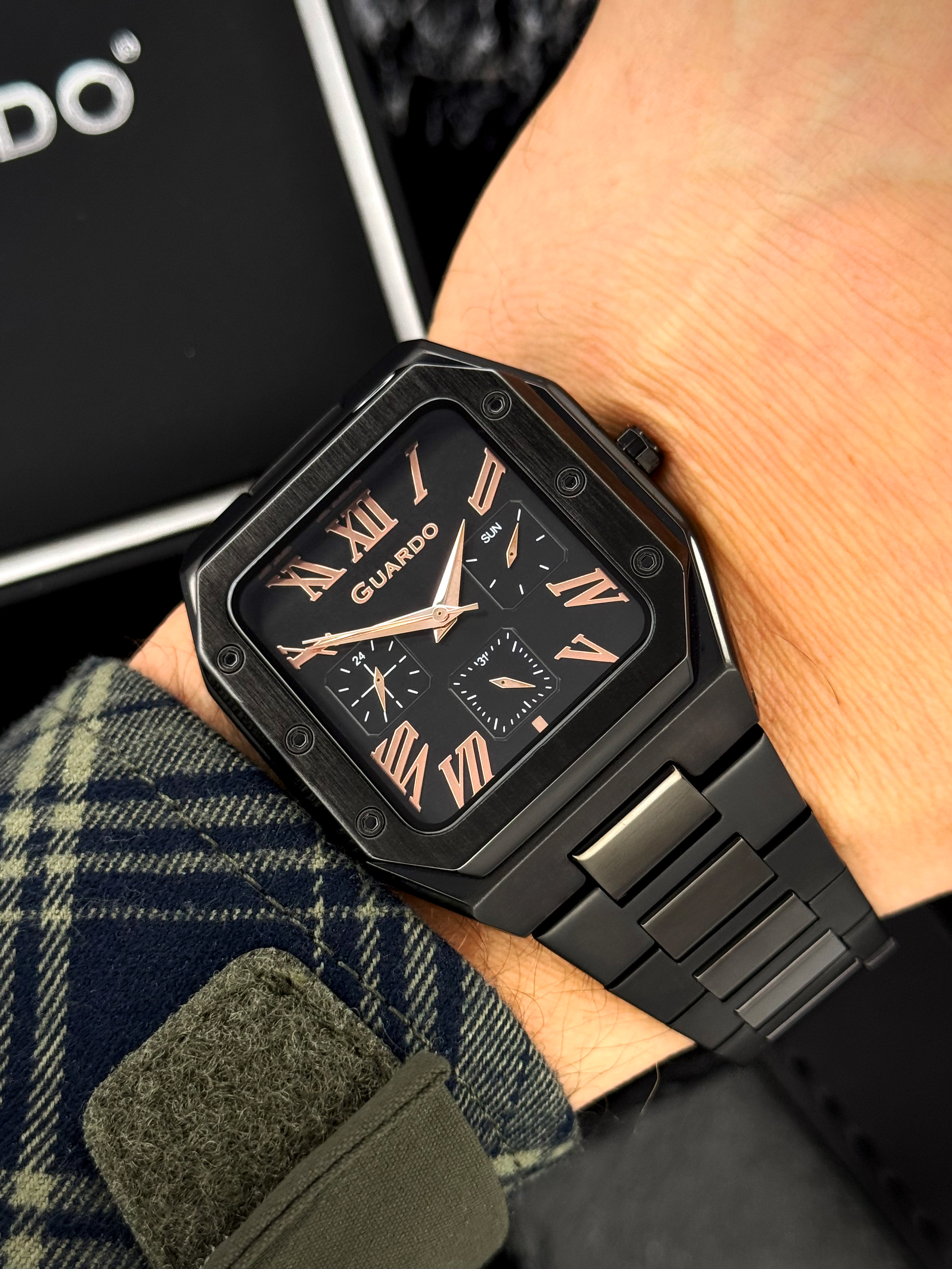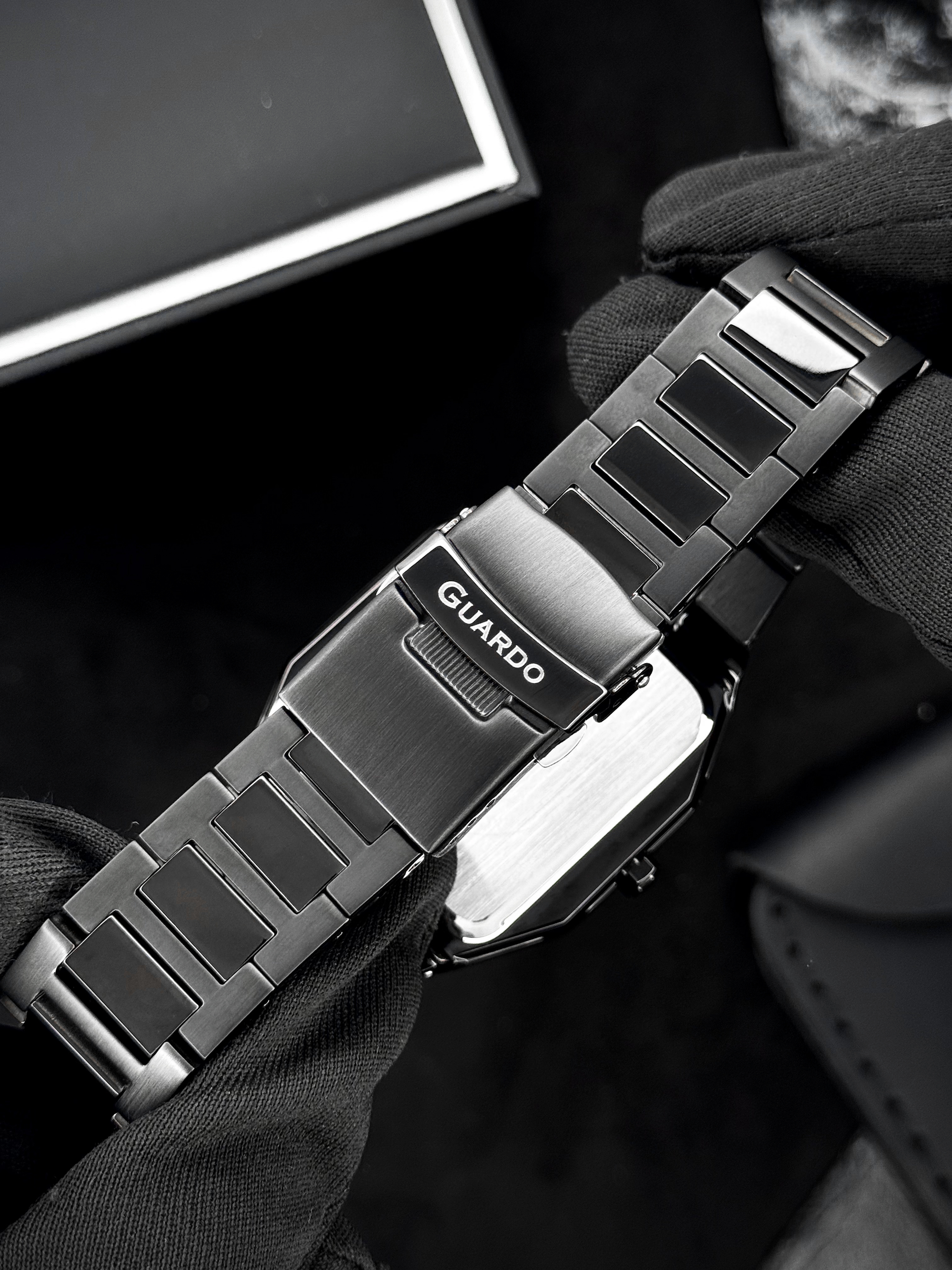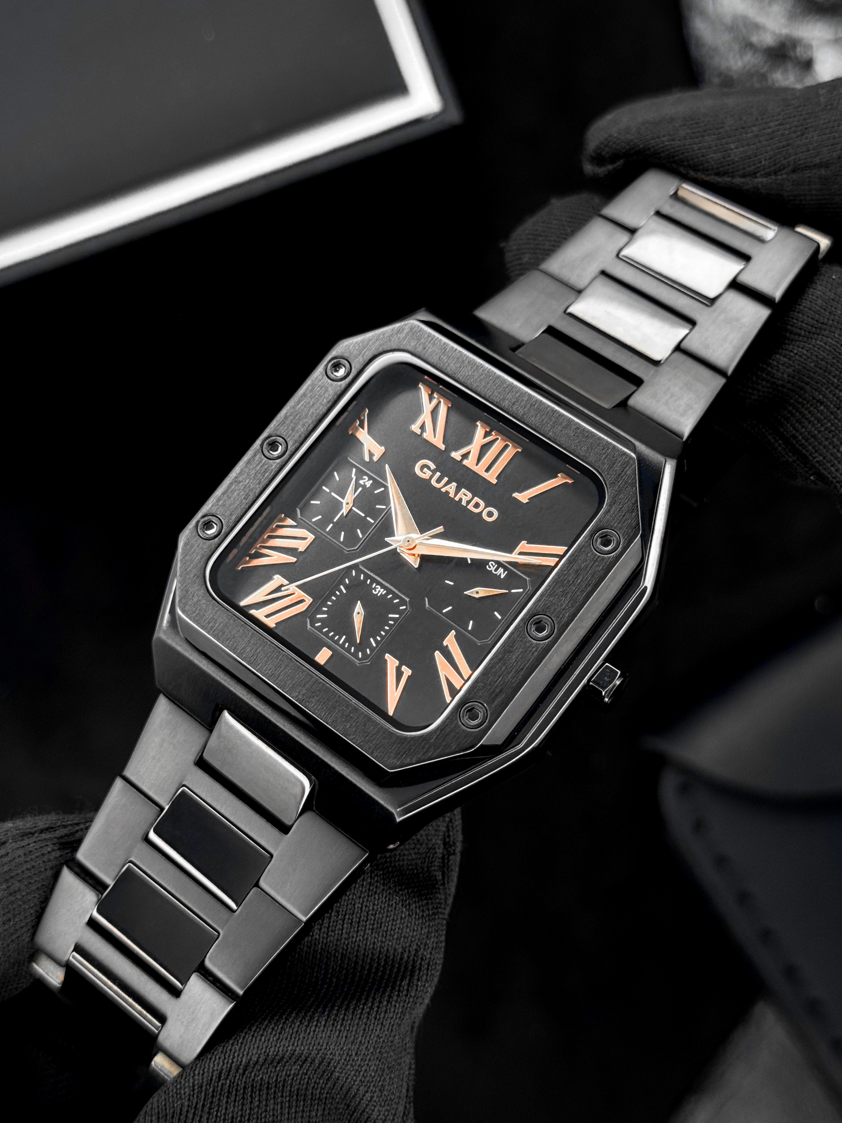 Часы GUARDO 012726-4 M — строгий квадрат в черном исполнении