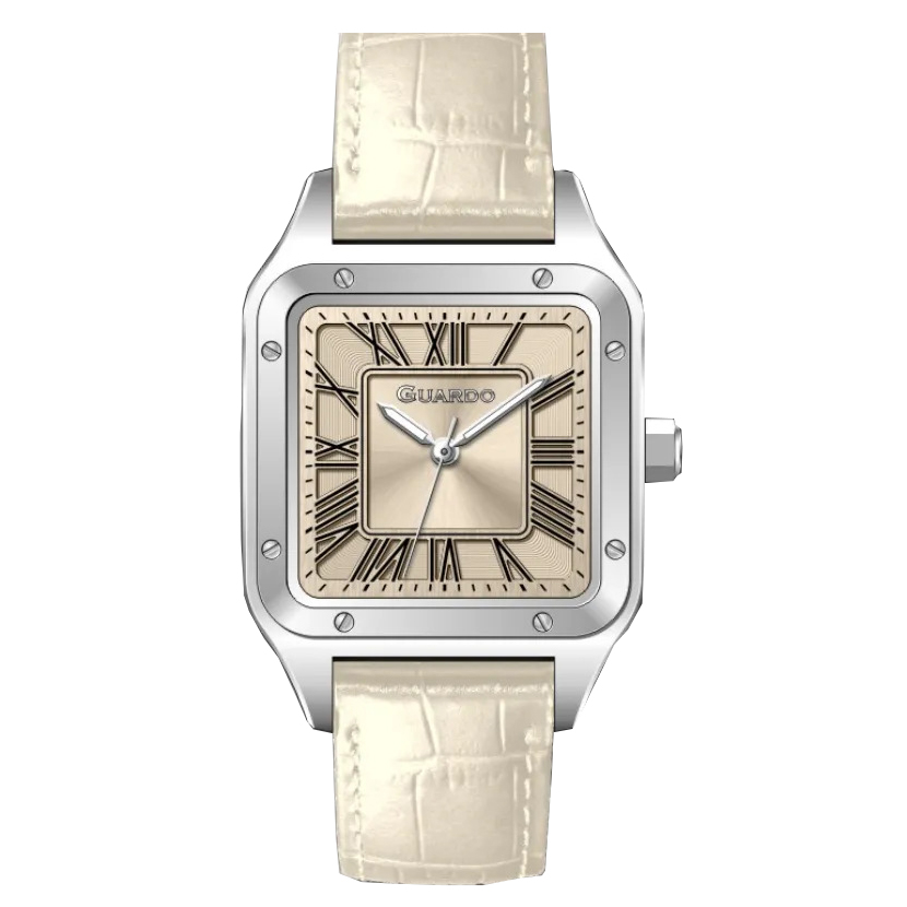 Предлагаем вашему вниманию стильные мужские часы GUARDO 012835-2, которые сочетают в себе элегантный дизайн и надежность. Эти часы имеют квадратный корпус из нержавеющей стали серебристого цвета, что подчеркивает его классический стиль. Ремешок из натуральной белой кожи обеспечивает комфортное ношение и придает изысканность.