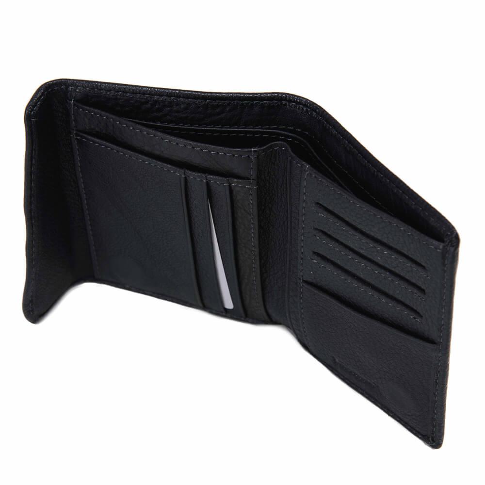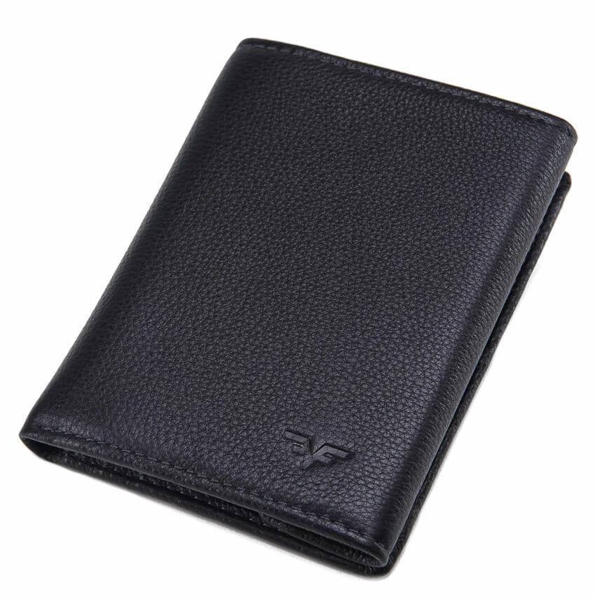 - кожаный кошелек черного цвета, получил 10 делений для визитных карт и два