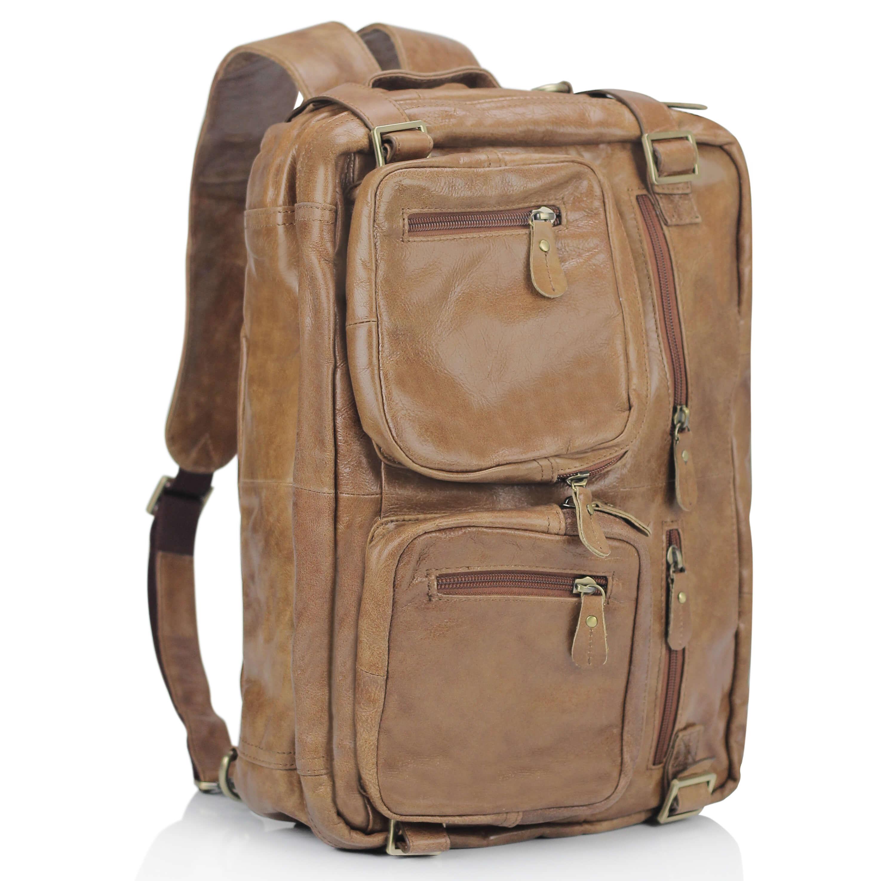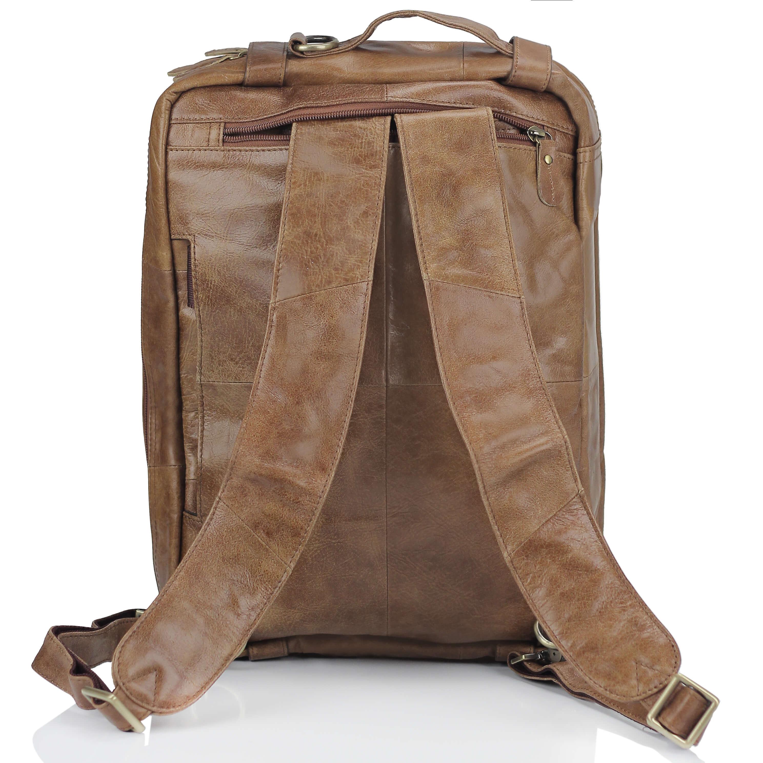 сумка-рюкзак темно-кофейного цвета, изготовлена из кожи типа винтаж;