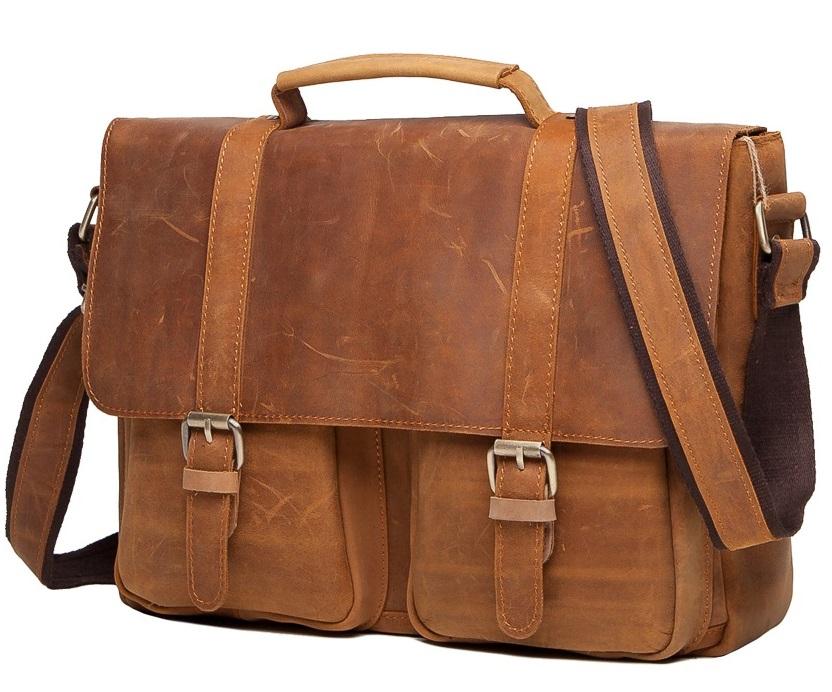 мужской портфель из натуральной лошадиной кожи, красивого светло-коричневого