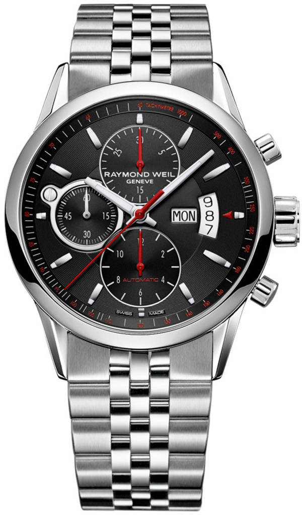 Цвет корпуса - серебристый; Форма корпуса - круглые; Диаметр корпуса - 42; Цвет циферблата - черный; Тип индикации - аналоговый; Стекло - сапфировое; Фабрика сборки - Швейцария; Тип механизма - механика с автоподзаводом; Материал - нержавеющая сталь; Браслет / Ремешок - браслет; Стиль - Классика; Водозащита - 100 WR;Купити Годинник RAYMOND WEIL 7730-ST-20041 від виробника Raymond Weil недорого за ціною 137 520 грн. доставка Годинник RAYMOND WEIL 7730-ST-20041 7730-ST-20041 в Київ, Дніпро, Одесу, Львів, Харків, Вінницю та інші регіони України за тарифами Нової Пошти.