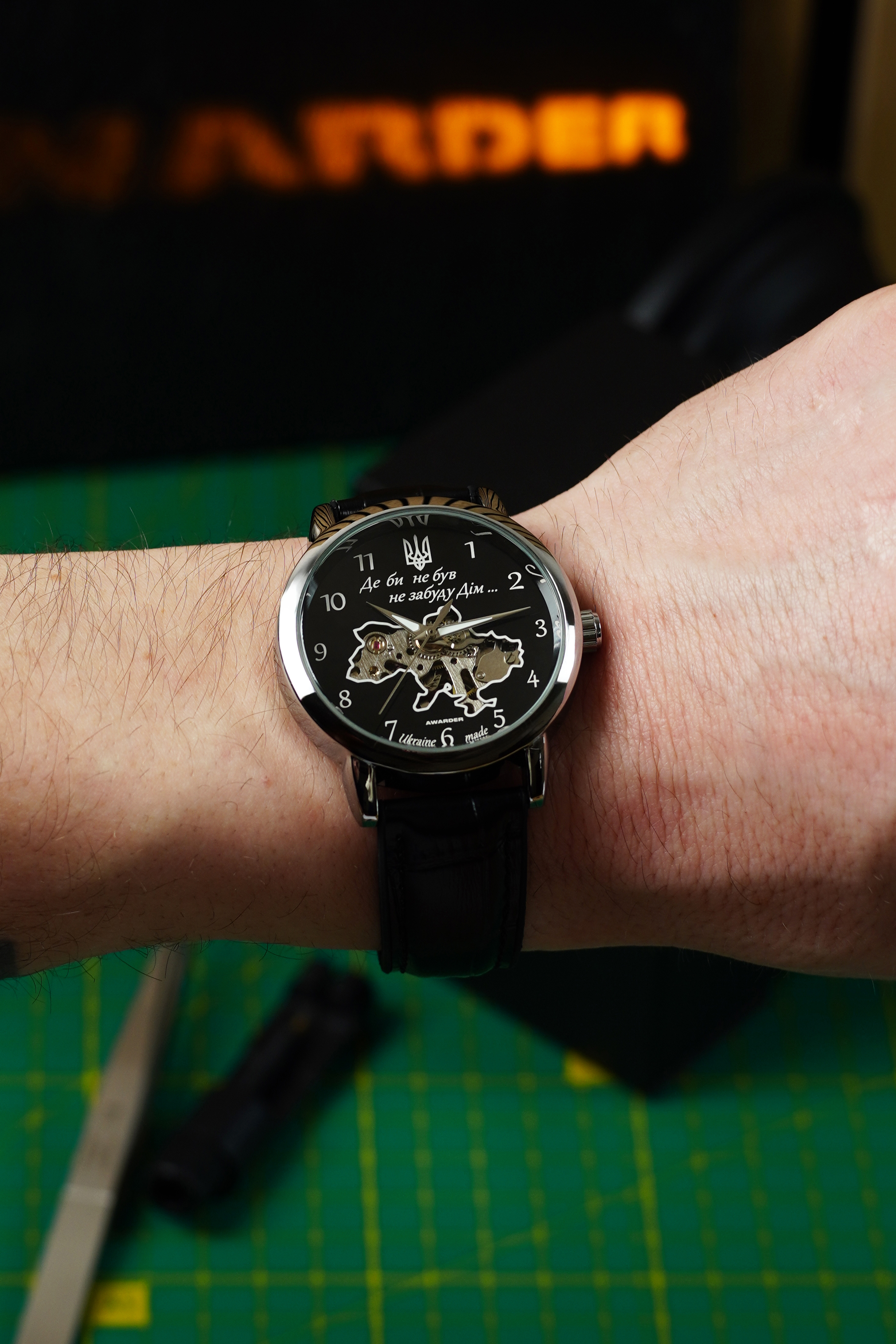 Годинник Awarder 022 “Не Забуду Дім” Silver-Black — класика з українським характером