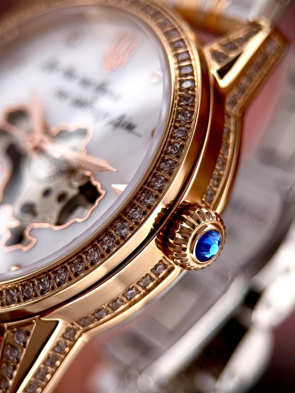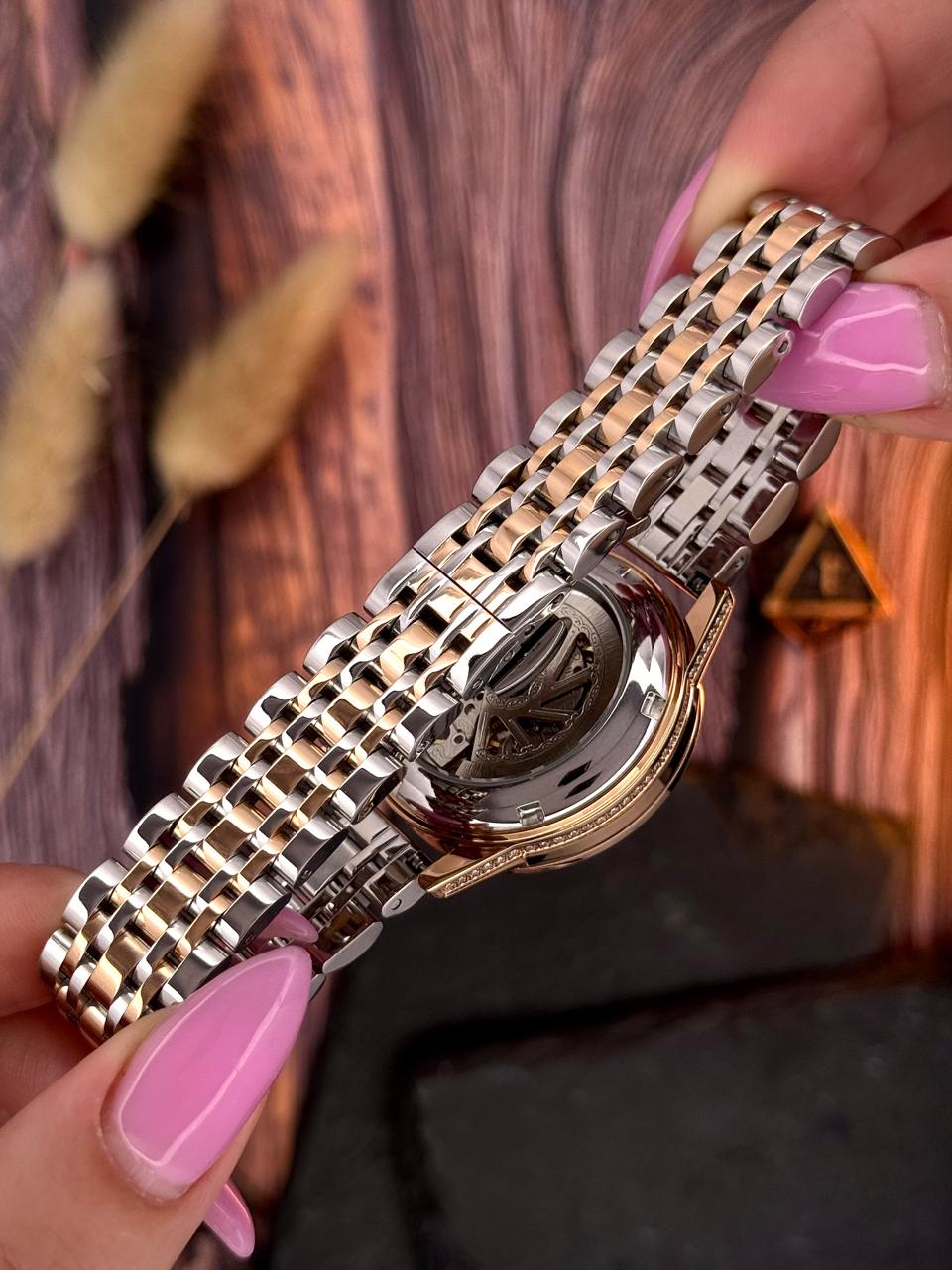 Жіночий годинник Awarder 049 — це поєднання елегантності та практичності. Сріблястий сталевий браслет і золотистий корпус створюють вишуканий контраст, а перламутровий циферблат із крапковими індикаторами надає моделі жіночності. Механіка з автопідзаводом забезпечує надійну роботу без потреби заміни батарейки, а водозахист до 50 м робить годинник універсальним для щоденного використання.
