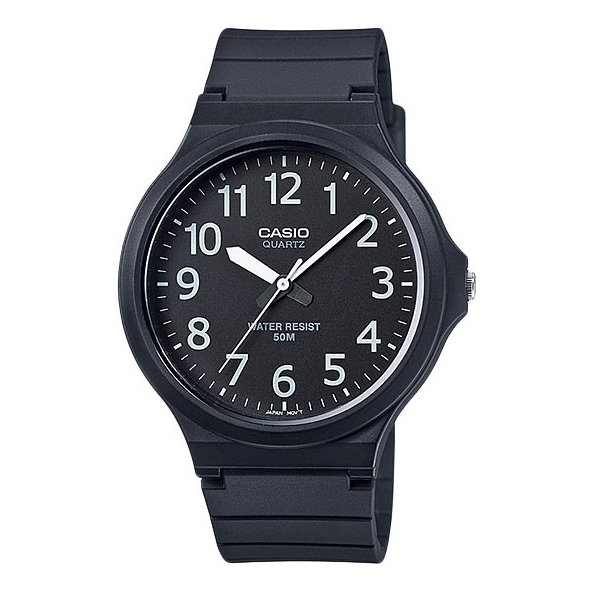 Годинник Casio MW-240-1B — це класичний вибір для чоловіків, які цінують надійність та стиль. З потужним кварцовим механізмом і водонепроникністю до 50 метрів, цей годинник стане чудовим супутником у будь-яких пригодах. Корпус годинника виготовлений з стійкого до зношування полімеру, що забезпечує легкість (вага всього 60 г) і комфорт на руці. Чорний кольоровий дизайн підкреслює його елегантність, а кругла форма корпусу з діаметром 43 мм робить його ідеальним доповненням будь-якого образу. Мінеральне скло захищає циферблат, на якому розташовані індекси та арабські цифри для легкого зчитування часу. Годинник оснащений люмінесцентним підсвічуванням, що дозволяє зручно користуватися ним у темряві. Додаткові функції включають індикацію годин, хвилин та секунд. Гарантія на годинник становить 24 місяці, що підтверджує високу якість японського виробництва. Casio MW-240-1B — ваш надійний партнер у повсякденному житті.Купити Casio MW-240-1B від виробника Casio недорого за ціною 1 760 грн. доставка Casio MW-240-1B 1141-0056 в Київ, Дніпро, Одесу, Львів, Харків, Вінницю та інші регіони України за тарифами Нової Пошти.