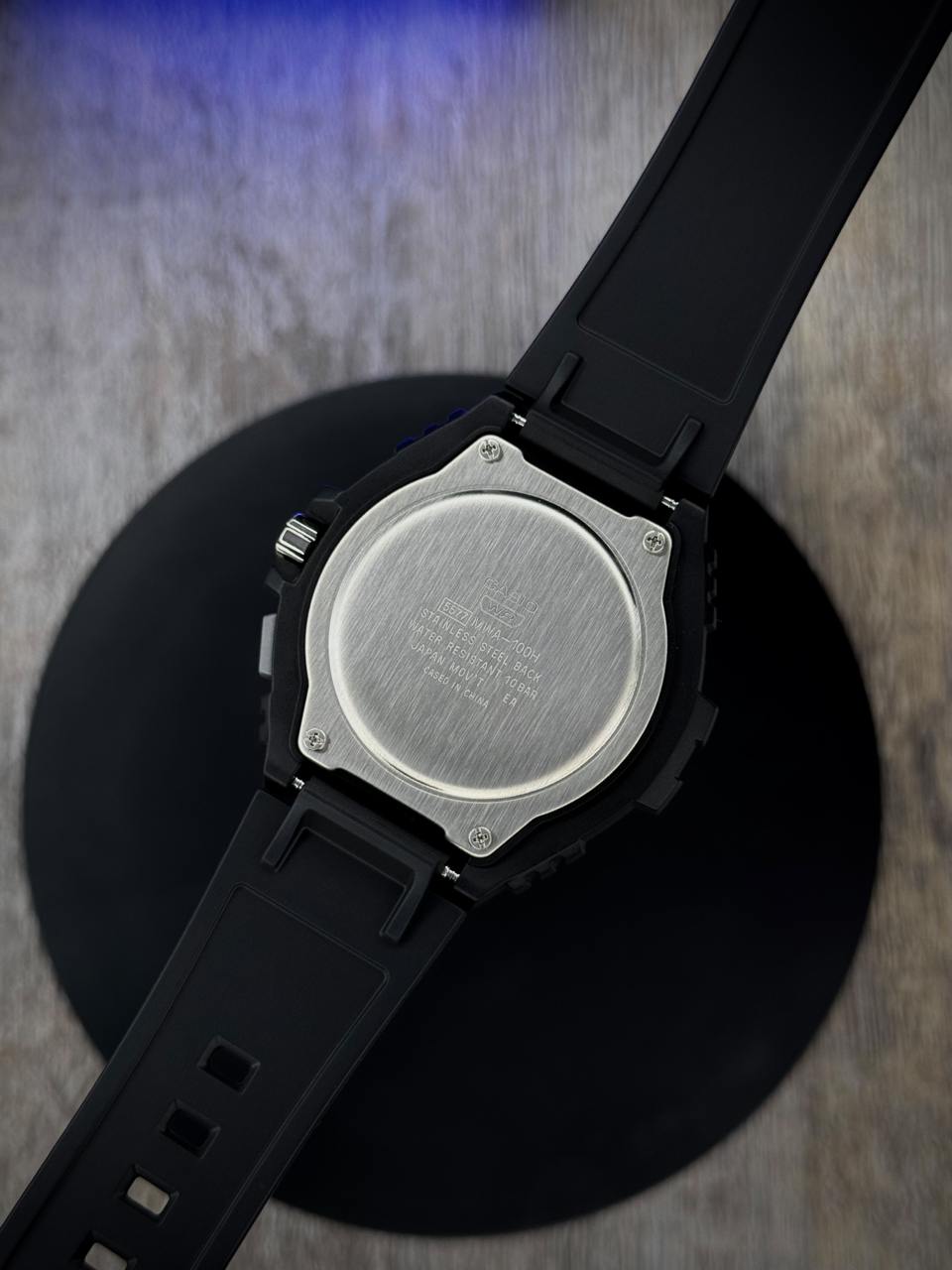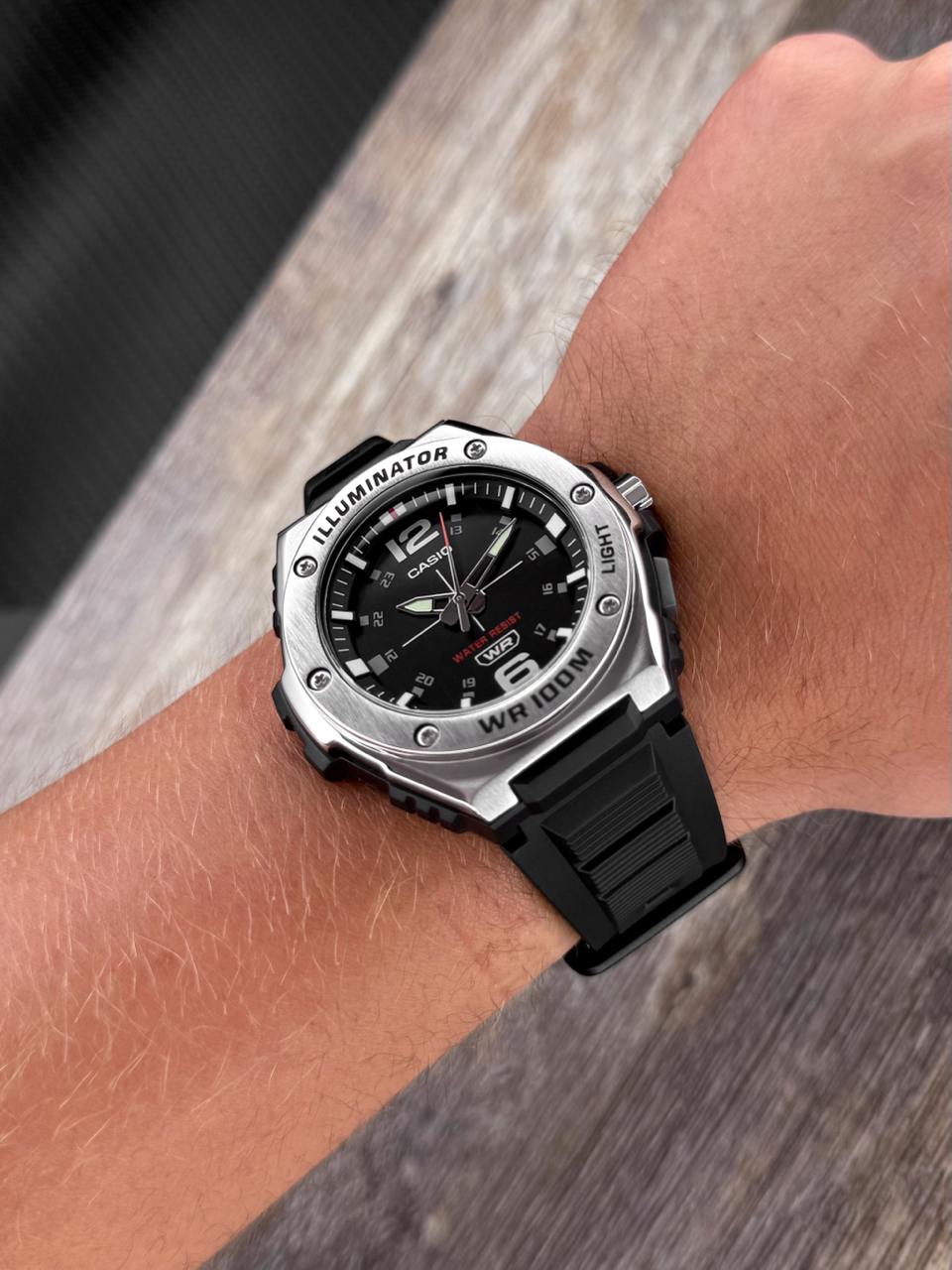Casio MWA-100H-1A — це вдале поєднання спортивного дизайну, японської точності та практичності на кожен день. Завдяки великому корпусу, легкій вазі та люмінесцентній підсвітці, цей годинник зручний у щоденному використанні та стане незамінним аксесуаром у будь-яких умовах.