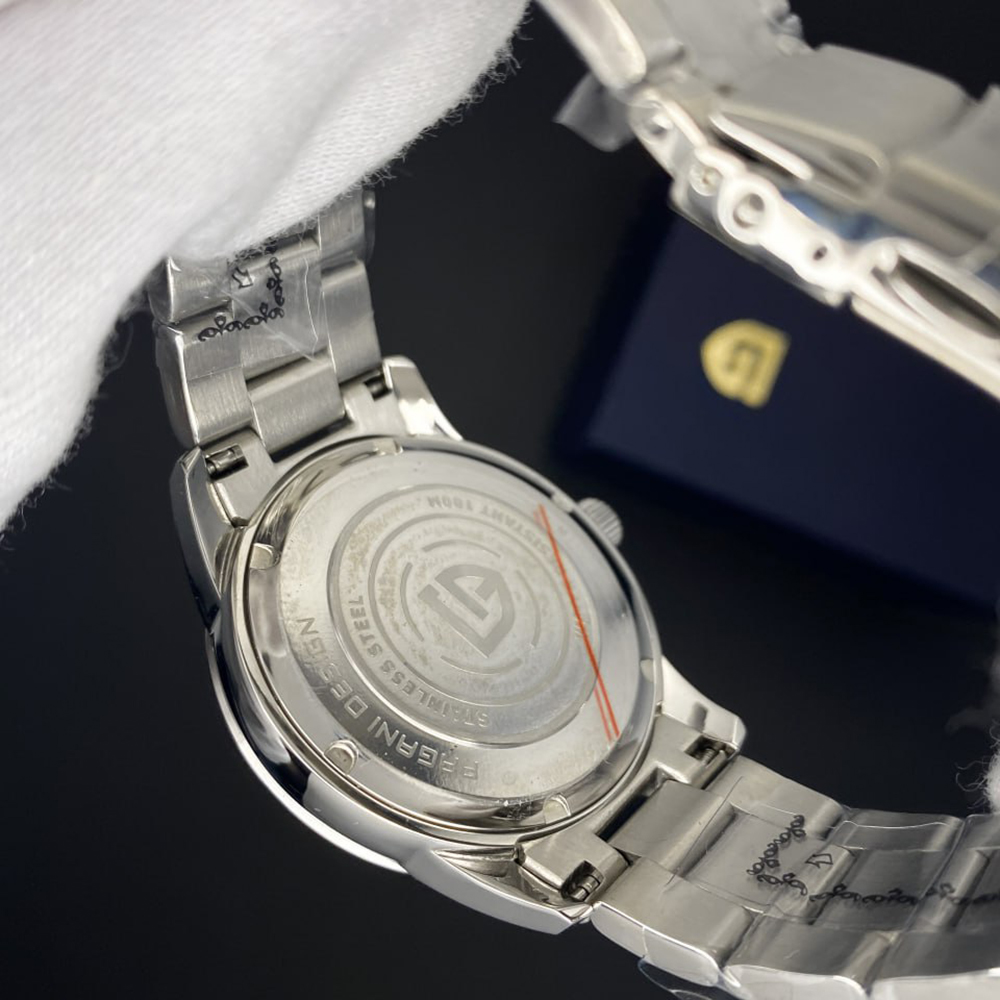 Годинник Pagani Design PD-1734 Silver-Black – класичний чоловічий аксесуар, виготовлений зі сталевого корпусу та браслета. Водонепроникний до 100 метрів, цей годинник ідеально підходить для активного способу життя. Сапфірове скло забезпечує високу стійкість до подряпин, а люмінесцентна підсвітка дозволяє легко читати час у темряві. Прямокутний циферблат зі стрілочним індикатором надає елегантного вигляду, а кольорове виконання в сріблястому відтінку додає стильності. Годинник має кварцовий механізм та індикацію годин, хвилин і секунд. Гарантія на продукцію становить 12 місяців. Розміри годинника – 40 х 40 мм, довжина ремінця – 22 см, ширина – 20 см, вага – 122 г. Країна виробництва - Китай.Купити Pagani Design PD-1734 Silver-Black від виробника Pagani Design недорого за ціною 3 650 грн. доставка Pagani Design PD-1734 Silver-Black 1138-0024 в Київ, Дніпро, Одесу, Львів, Харків, Вінницю та інші регіони України за тарифами Нової Пошти.