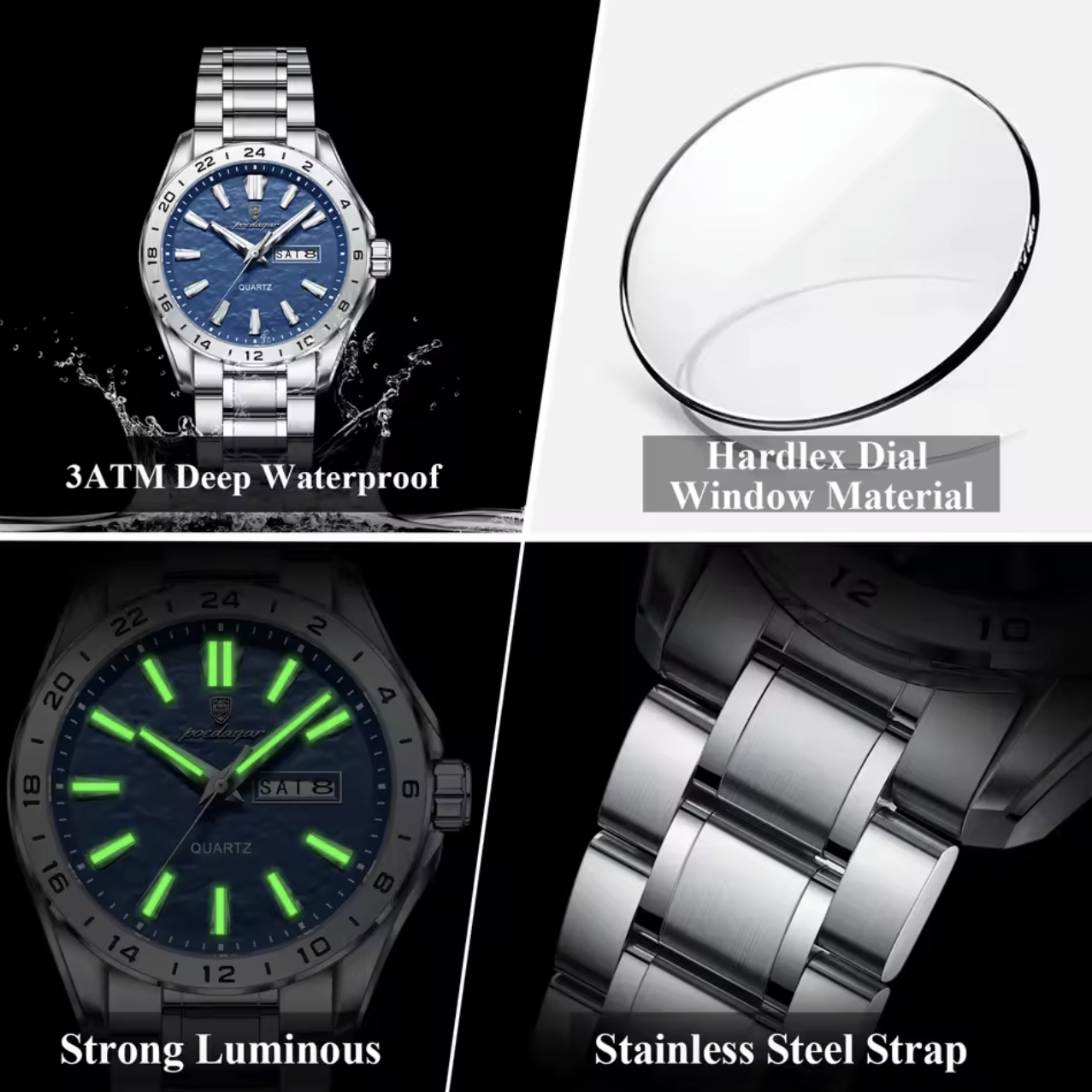 Poedagar - це поєднання елегантності, точності та сучасного стилю. Годинники цього бренду створені для тих, хто цінує витонченість у деталях та прагне підкреслити свою індивідуальність.Кожна модель Poedagar - це:Якісні матеріали: нержавіюча сталь, міцне мінеральне скло, надійні кварцові механізми.Стильний дизайн: від класичних рішень до сучасних спортивних форм.Функціональність: водозахист, індикатор дати, світловідбивні стрілки та інші корисні функції.Poedagar - це ідеальний вибір для ділових зустрічей, повсякденного стилю або особливих подій. Це не просто годинник - це вираз вашого смаку, впевненості та стилю.В комплекті йде офіційна гарантія на 12 місяців.Купити Poedagar Extra від виробника Poedagar недорого за ціною 989 грн. доставка Poedagar Extra 2205 в Київ, Дніпро, Одесу, Львів, Харків, Вінницю та інші регіони України за тарифами Нової Пошти.