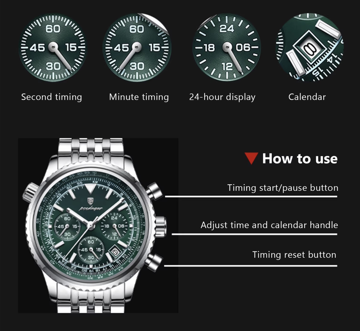 Poedagar - це поєднання елегантності, точності та сучасного стилю. Годинники цього бренду створені для тих, хто цінує витонченість у деталях та прагне підкреслити свою індивідуальність.Кожна модель Poedagar - це:Якісні матеріали: нержавіюча сталь, міцне мінеральне скло, надійні кварцові механізми.Стильний дизайн: від класичних рішень до сучасних спортивних форм.Функціональність: водозахист, індикатор дати, світловідбивні стрілки та інші корисні функції.Poedagar - це ідеальний вибір для ділових зустрічей, повсякденного стилю або особливих подій. Це не просто годинник - це вираз вашого смаку, впевненості та стилю.В комплекті йде офіційна гарантія на 12 місяців.Купити Poedagar Major від виробника Poedagar недорого за ціною 1 495 грн. доставка Poedagar Major 2100 в Київ, Дніпро, Одесу, Львів, Харків, Вінницю та інші регіони України за тарифами Нової Пошти.