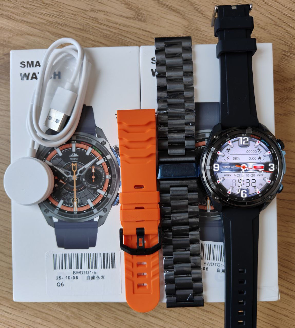 | Комплектація | Коробочка, USB-зарядка, Інструкція, Товарний чек, 3 ремінці: металевий + 2 силіконових (чорний, помаранчевий) |