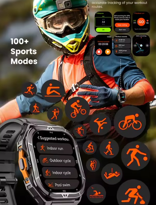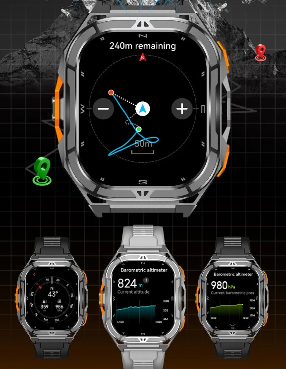Smart TANK X5 TRAIL MASTER + GPS — це ударостійкий смарт-годинник для екстремального використання, поєднуючи навігаційні функції, спортивні режими та автономність. У комплекті два ремінці (силіконовий і нейлоновий) — відкриття для різних стилів і умов. Ідеальний вибір для тих, хто шукає надійний гаджет для мандрівок, тренувань і повсякденної активності.