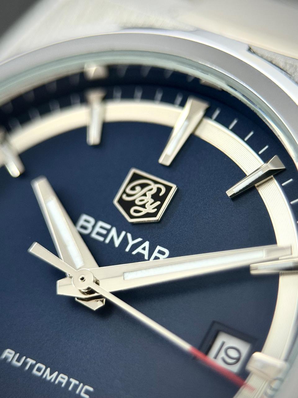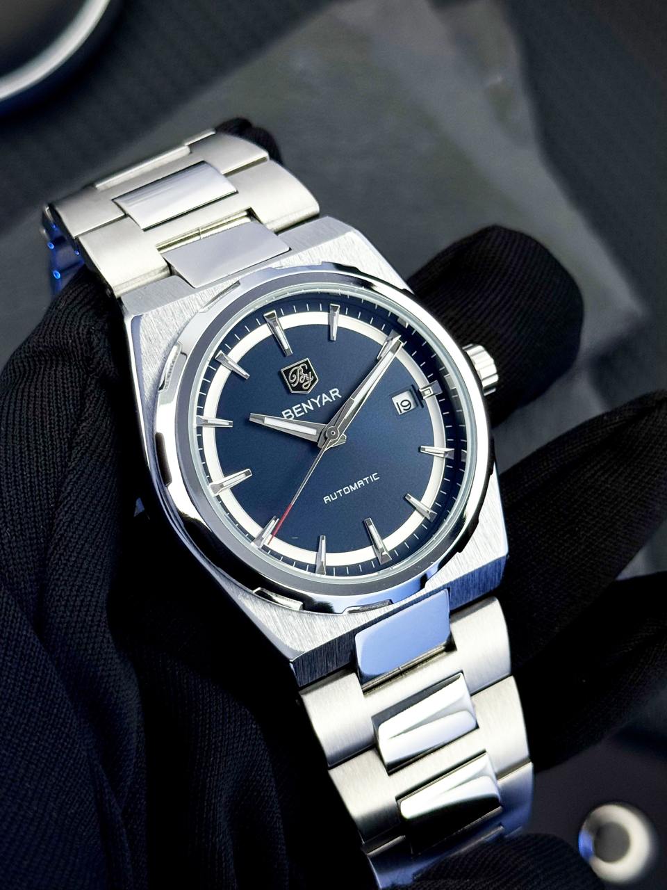 Benyar BY-5203 Silver-Blue – класичний чоловічий годинник з механічним механізмом з автопідзаводом. Поєднання елегантного сріблястого корпусу та браслета з синім циферблатом створює стильний акцент, який підходить як для повсякденного використання, так і для особливих випадків.