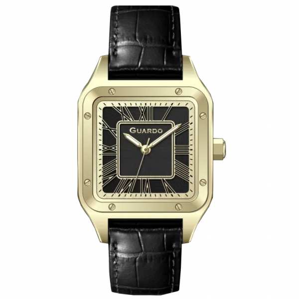 Представляємо годинник GUARDO 012835-4 – елегантний аксесуар для стильних чоловіків. Цей класичний кварцовий годинник поєднує в собі витонченість та функціональність. Його квадратний корпус із нержавіючої сталі в золотистому кольорі підкреслює стриманий шик, а чорний шкіряний ремінець додає особливого шарму.