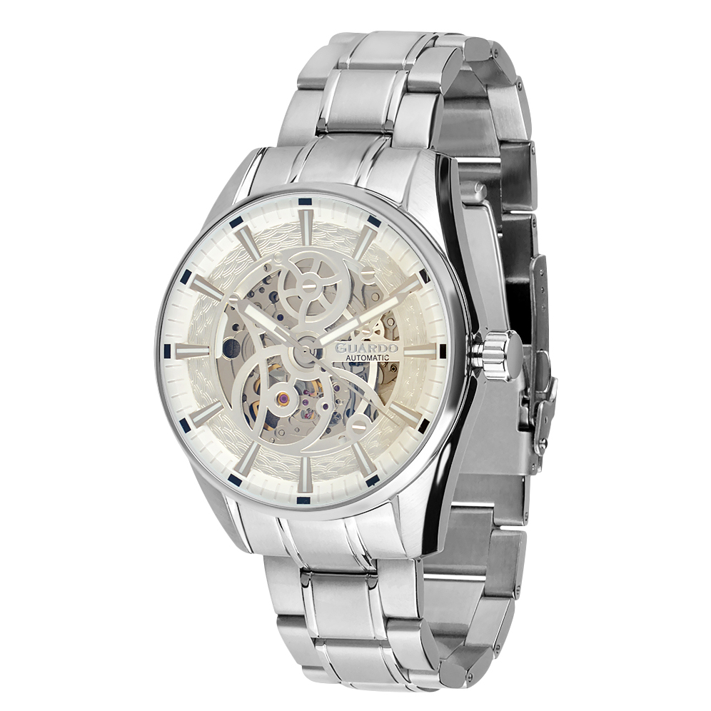 GUARDO SA03013-2 оснащений кварцовим механізмом, що забезпечує точність у відображенні часу, а також індикацією годин, хвилин, секунд, дня тижня та числа. Мінеральне скло захищає циферблат з індексами, а люмінесцентне підсвічування робить годинник зручним для використання в темряві.