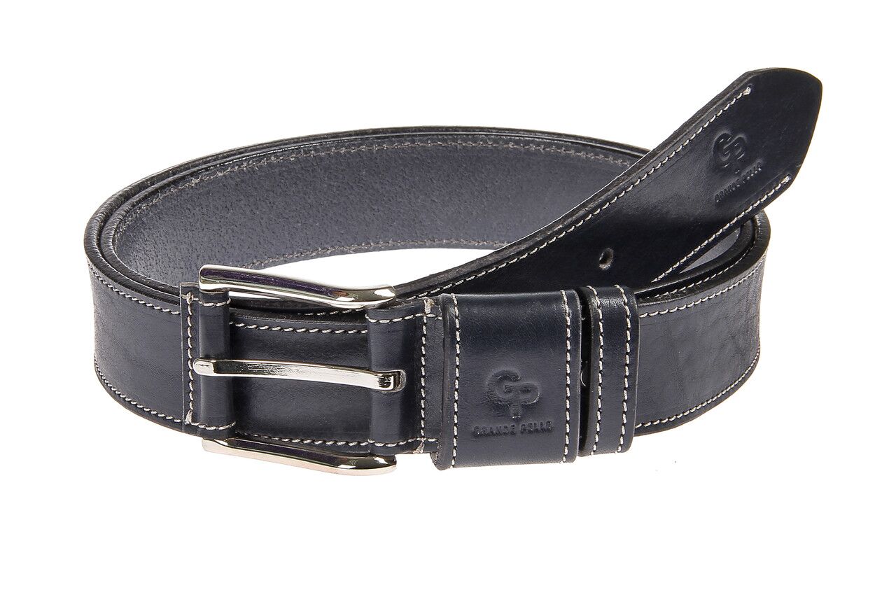 Шкіряний ремінь Grande Pelle Calvin, синій прошитий - опис, характеристики і ціна.