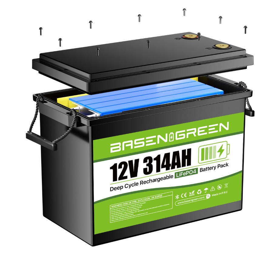 BasenGreen LiFePO4 акумулятор 12V 314Ah — це потужна літієва батарея глибокого циклу для інверторів, сонячних систем та автономного живлення. Оснащений вбудованою Smart BMS 150A та Bluetooth-моніторингом, що дозволяє контролювати стан батареї в реальному часі.