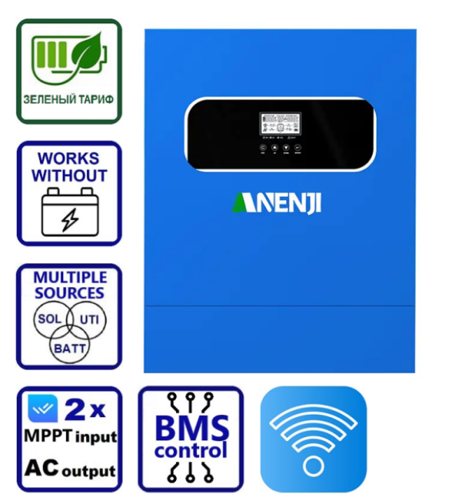 ANENJI 11 kW — це високопродуктивний гібридний інвертор, який поєднує: