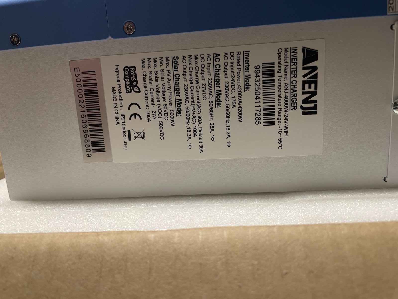 Гібридний інвертор ANENJI 4.2kW 24V MPPT Wi-Fi (чиста синусоїда, 4200Вт) - опис, характеристики і ціна.