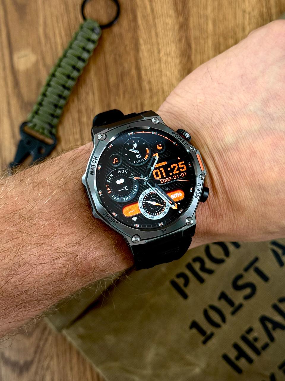Справжній титан у світі смарт-годинників. Потужний, масивний і функціональний. Створений для чоловіків, які цінують міцність, спорт і технології.