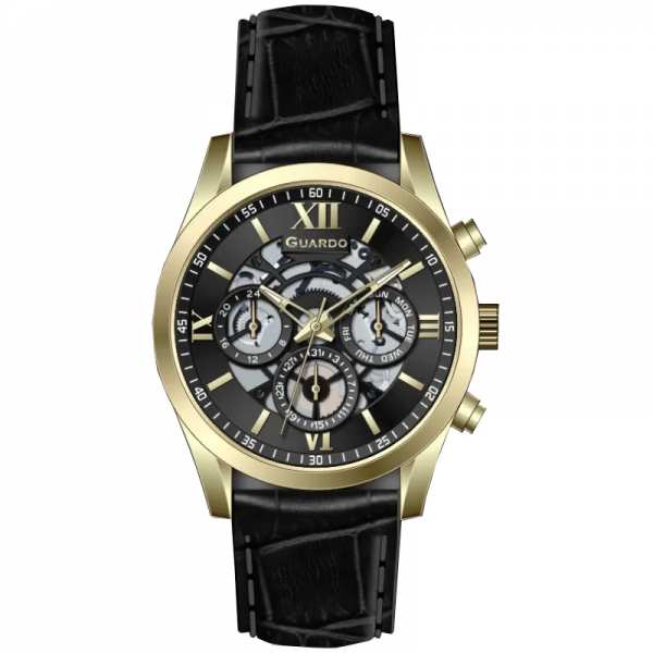 Представляем часы GUARDO 012837-6 – элегантный и стильный аксессуар для современных женщин. Его классический круглый корпус диаметром 42 мм изготовлен из нержавеющей стали, что обеспечивает длительную эксплуатацию, а золотистый цвет придает роскошь. Черный кожаный ремешок длиной 23,5 мм надежно фиксирует часы на запястье и делает его комфортным для ношения в течение дня.